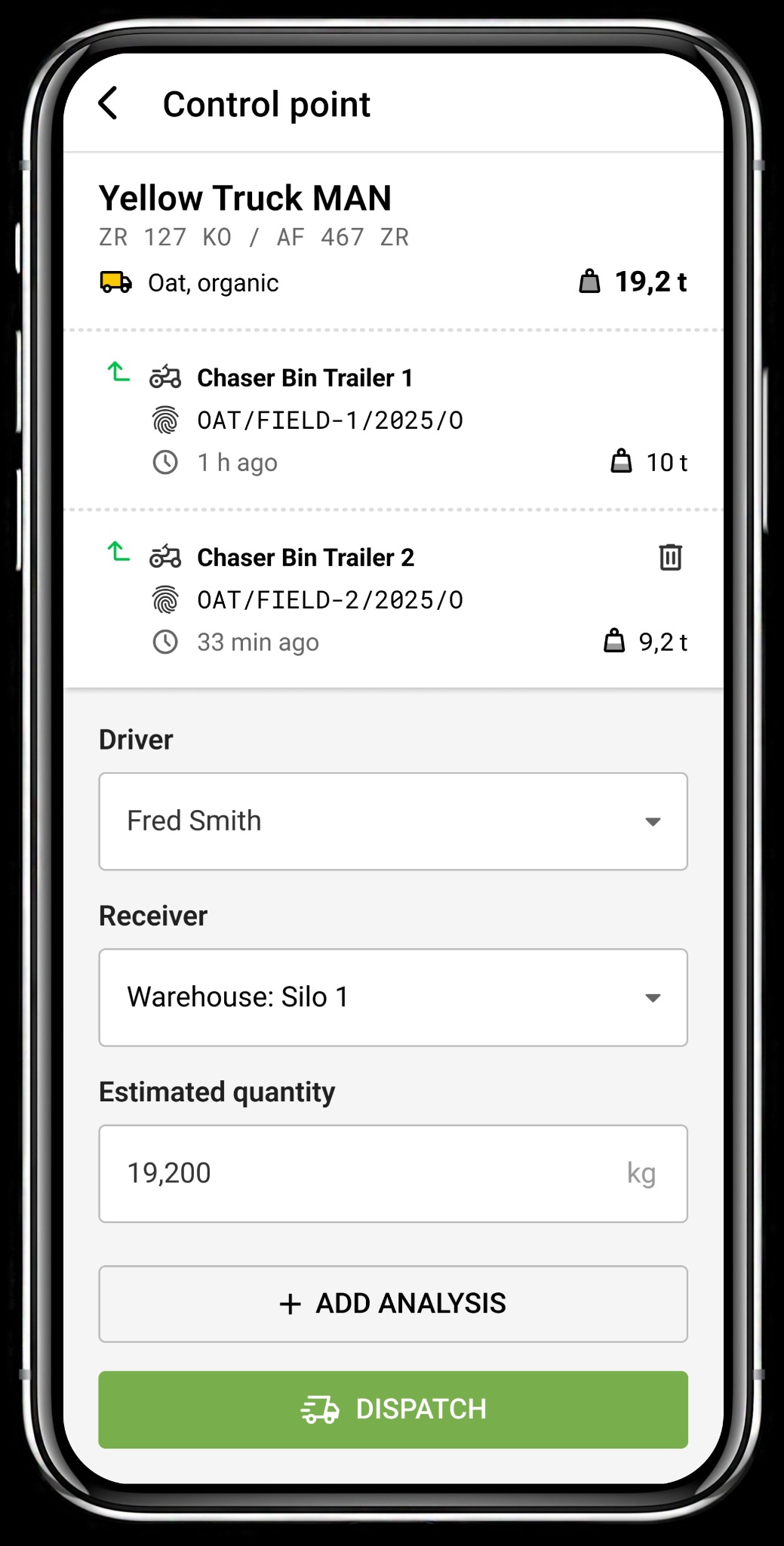 Control point tracks all produce transfers and every field-to-warehouse or field-to-buyer dispatches.