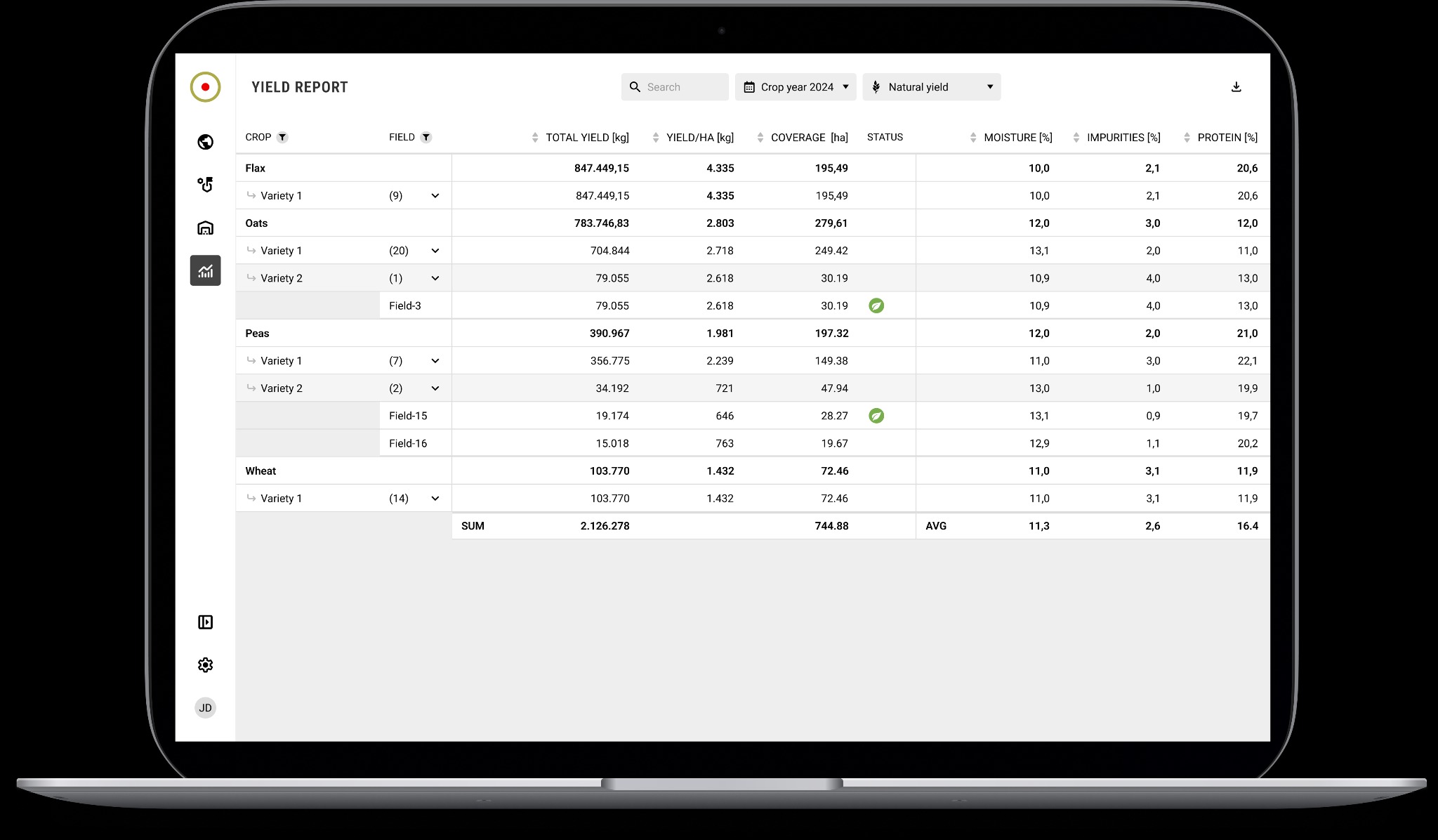 Yield report delivers valuable insights into yields per crop, variety, and field, empowering smarter decision-making for maximum profitability.